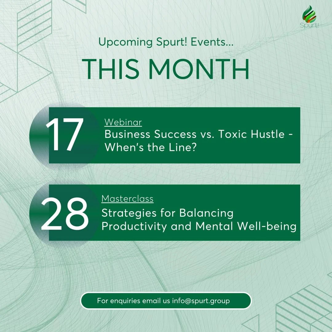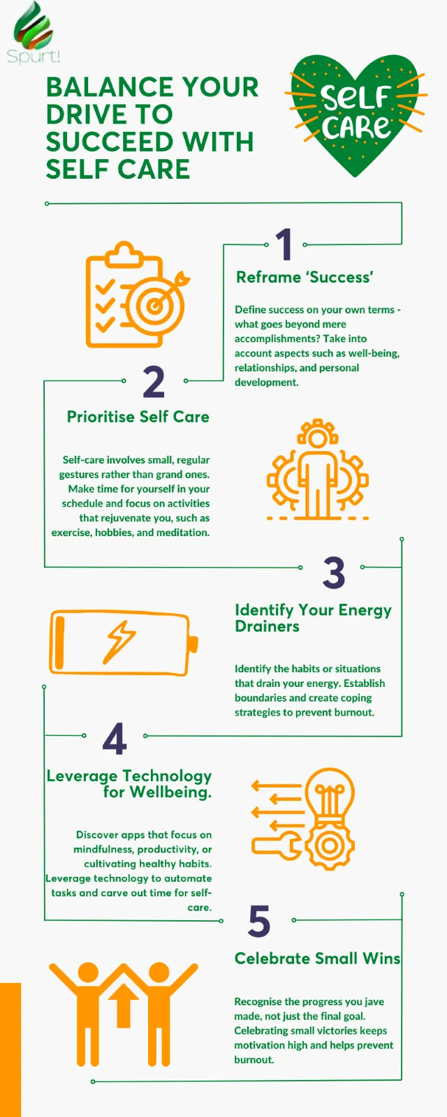 This Month, Spurt! is dedicated to helping you achieve sustainable success through a powerful balance of drive and self-care. Our theme, "Balance Your Drive to Succeed with Self-Care," reflects the importance of prioritising your well-being alongside your business ambitions.